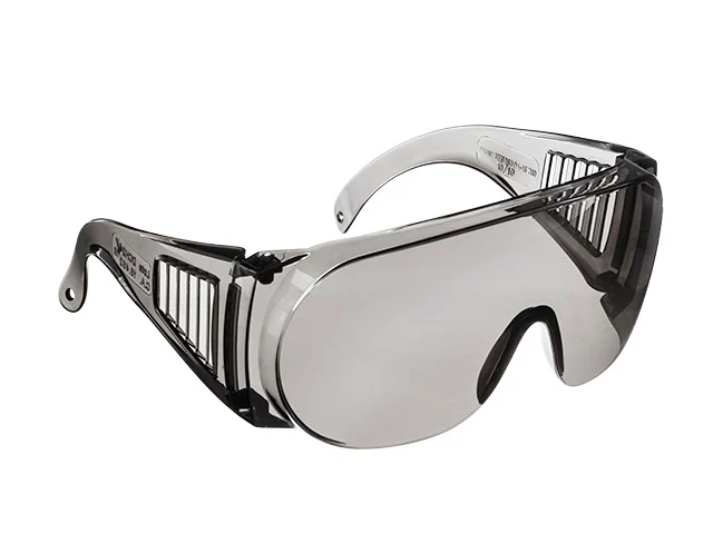Óculos de segurança com armação e visor confeccionados em uma única peça de policarbonato disponível nas cores incolor e cinza com apoio nasal, meia borda na parte superior e proteção lateral, hastes tipo espátula confeccionadas do mesmo material da armação com cinco fendas para ventilação fixadas à armação através de pinos plásticos. Fabricante estrangeiro: Changzhou Dahua Imp. And Exp. (Group) Corp. Ltd. - China.