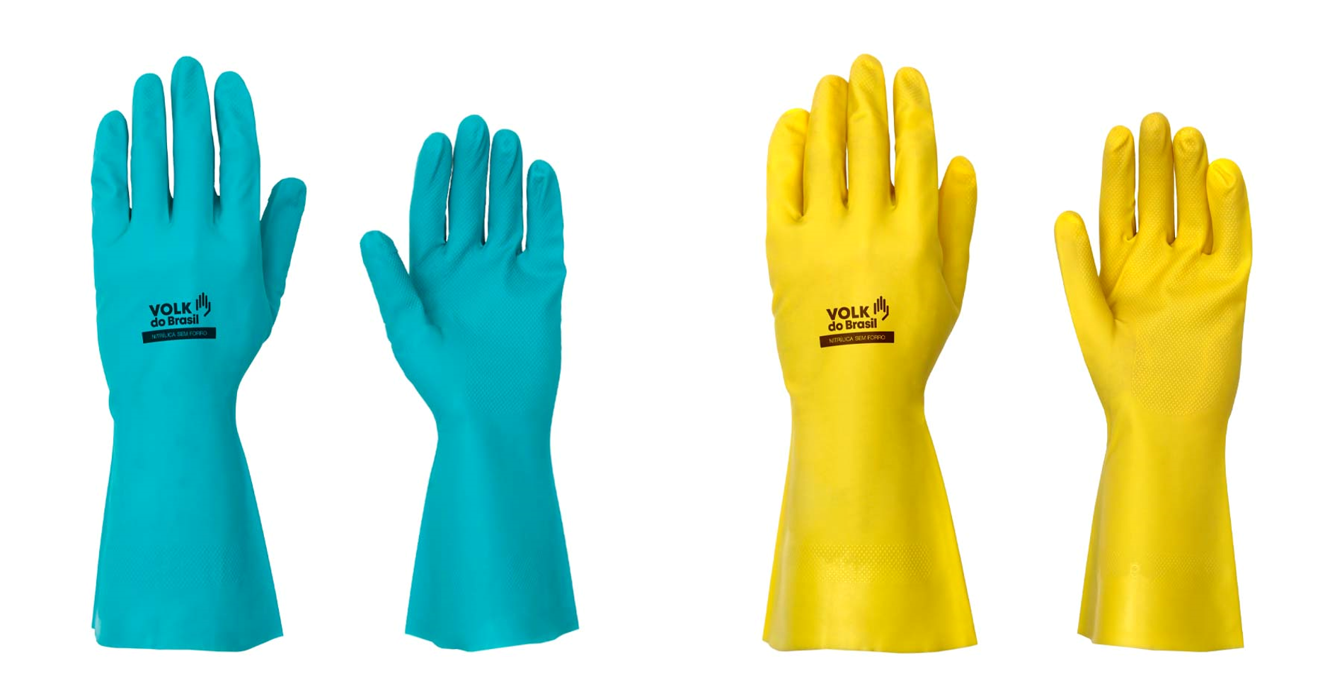 Proteção das mãos do usuário contra agentes abrasivos, escoriantes, cortantes e perfurantes e contra agentes químicos (álcoois primários (a), compostos de nitrila (c), hidrocarbonetos aromáticos (f), hidrocarbonetos saturados (j) e bases inorgânicas (k)).